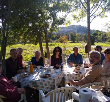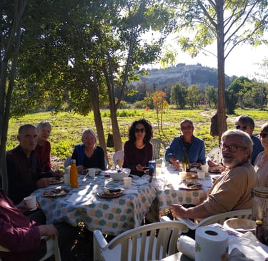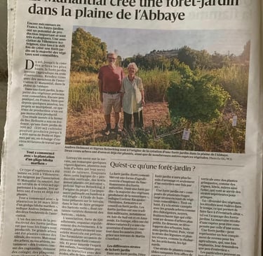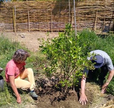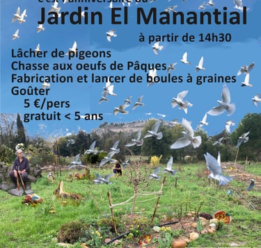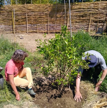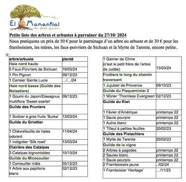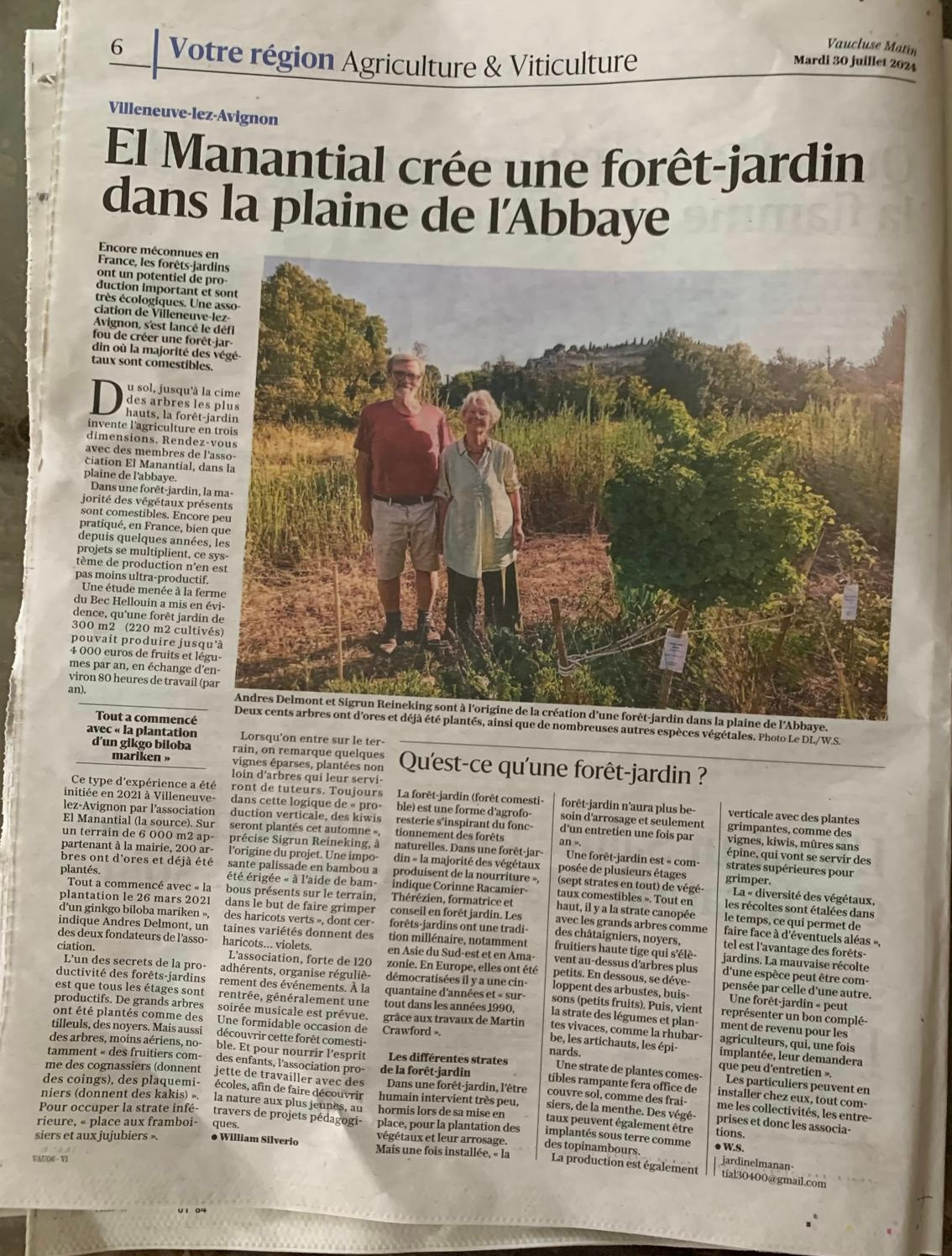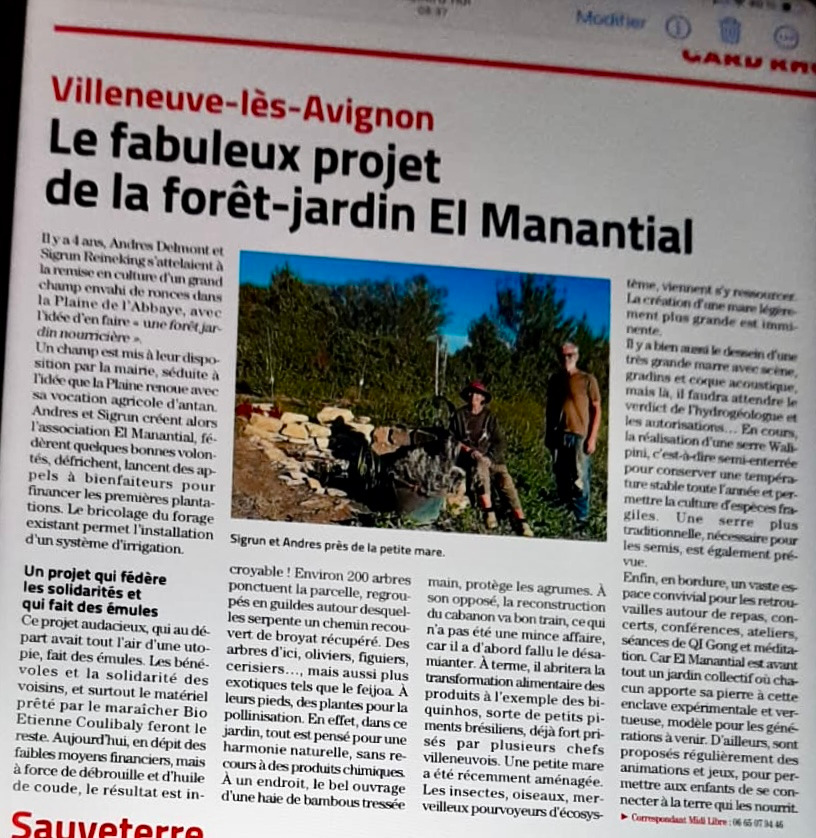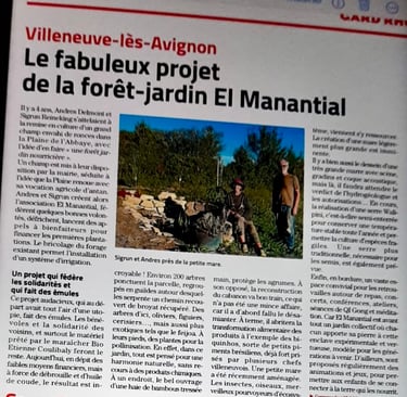 Depuis le printemps 2021, nous travaillons collectivement à la création de la forêt jardin nourricière el manantial sur une parcelle communale de la plaine de l'abbaye, à Villeneuve lez Avignon. Des centaines d'arbres et arbustes ont été plantés, un réseau d'arrosage a été réalisé.